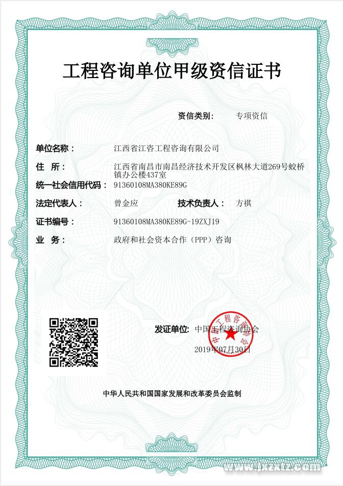 工程咨詢單位甲級資信證書(PPP專項資信)