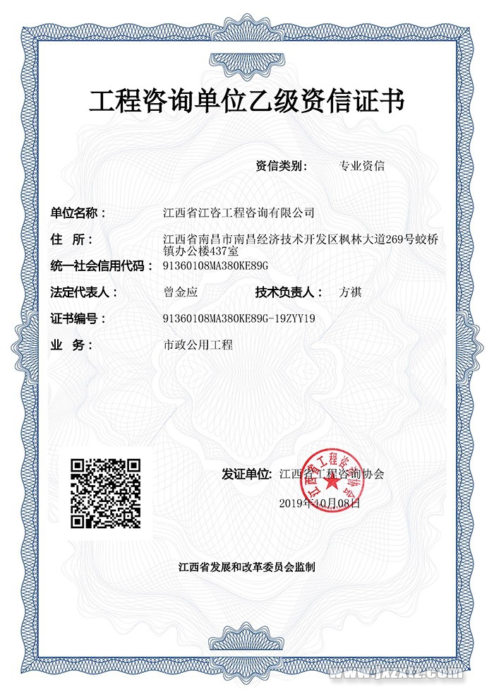 工程咨詢單位乙級資信證書